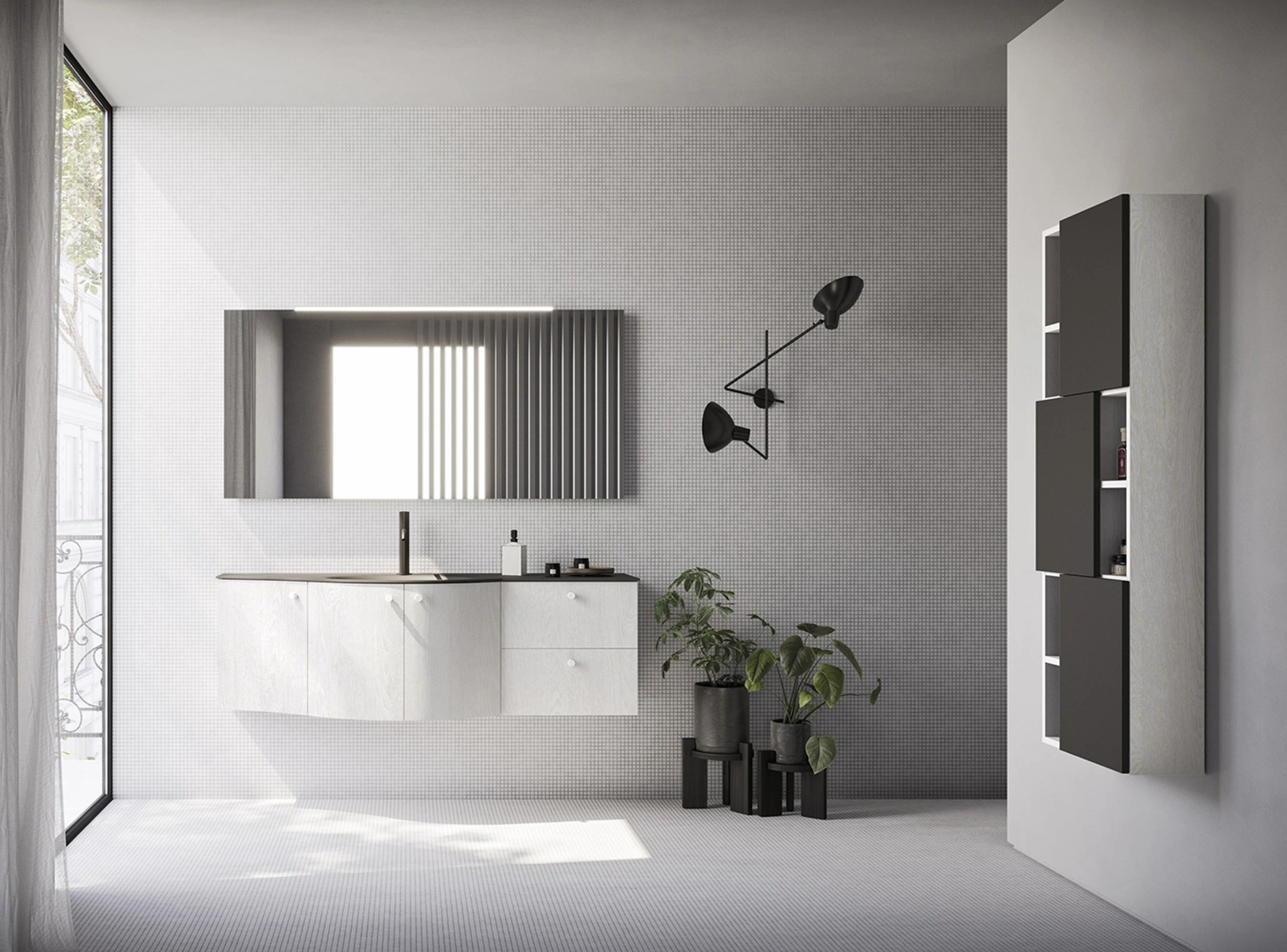 Gradevole e funzionale in ogni stanza da bagno, un modello in melaminico moderno come quello nell'immagine risolverà le tue problematiche abitative di ogni tipo. Arbi propone proposte per l’Arredo Bagno moderno con mobili bagno sospesi che coniugano linee ben studiate e funzionalità, come questo locale chiede. Il modello Mobile da Bagno Ho-me plus curvo 57 di Arbi in melaminico è appartenente alla ricca collezione di mobili per la stanza da bagno dell'azienda, sempre di charme. Con i modelli che presentiamo ti garantirai mobili fatti a regola d'arte e di design anche per il bagno, che va progettato con attenzione, con funzionalità e stile. Finiture innovative e una ricca palette cromatica garantiscono una progettualità fin nel dettaglio e materiali durevoli che resistano a diverse sostanze.