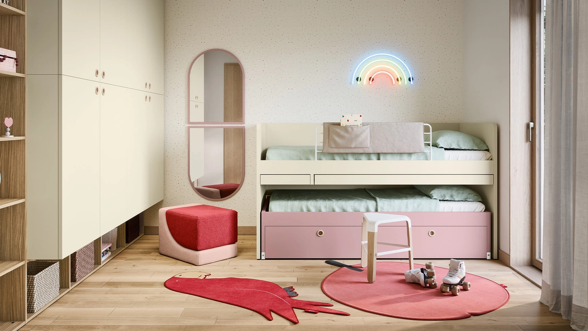 Questa proposta con finitura in melaminico, tra quelle salvaspazio per bambini di Nidi, accontenta le aspettative degli adulti e i gusti dei piccoli. Con la Cameretta Salvaspazio con Letti Rialzati di Nidi renderai la stanza dei tuoi figli uno spazio davvero confortevole e sicuro, che li seguirà mentre diventano grandi. Per arredare al meglio le Camerette, Nidi rende disponibili soluzioni progettuali e polifunzionali: sono numerose le attività che i tuoi figli svolgono lì. Venire in negozio vuol dire vedere dal vivo tutte le più belle soluzioni per bambini salvaspazio in melaminico che presentiamo nel nostro punto vendita.